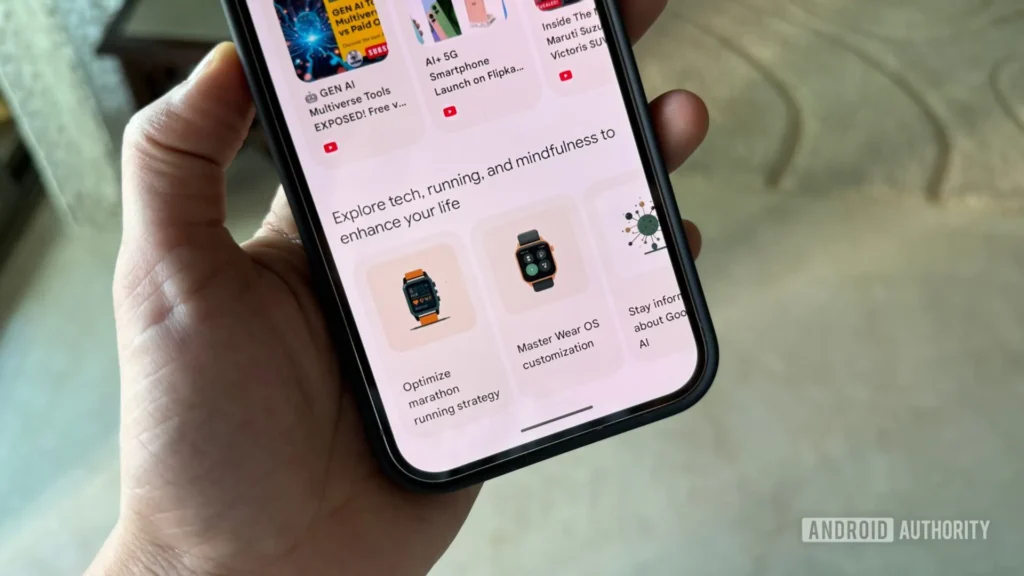 Google Discoverフィードの上部や「At a Glance」ウィジェットの一部として表示され、Samsungの「Now Brief」のような利用シーンを想定していました。