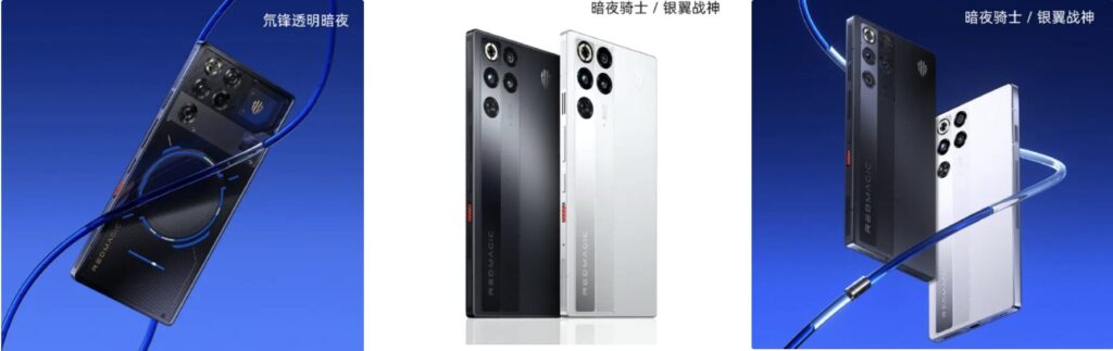 ハッシュタグ「#RedMagic11ProWaterCooledMobile」からも分かる通り、今回の目玉は“水冷式”の冷却システム。透明モデルでは背面からチューブが見える構造になっており、デザイン面でもインパクト抜群です。ブラックとホワイトのバリエーションも予告されています。